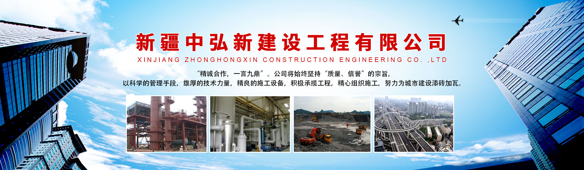 ZHONGHONGXIN CONSTRUCTION ENGINEERING 公 司 簡 介新疆中弘新建設工程有限公司創建于2019年,注冊資金壹仟萬元,經自治區公安廳批準為爆破作業單位許可證四級資質,主要從事礦山爆破工程的設計施工、礦上采掘施工業務。目前公司有1個工程處、2個項目部,分...